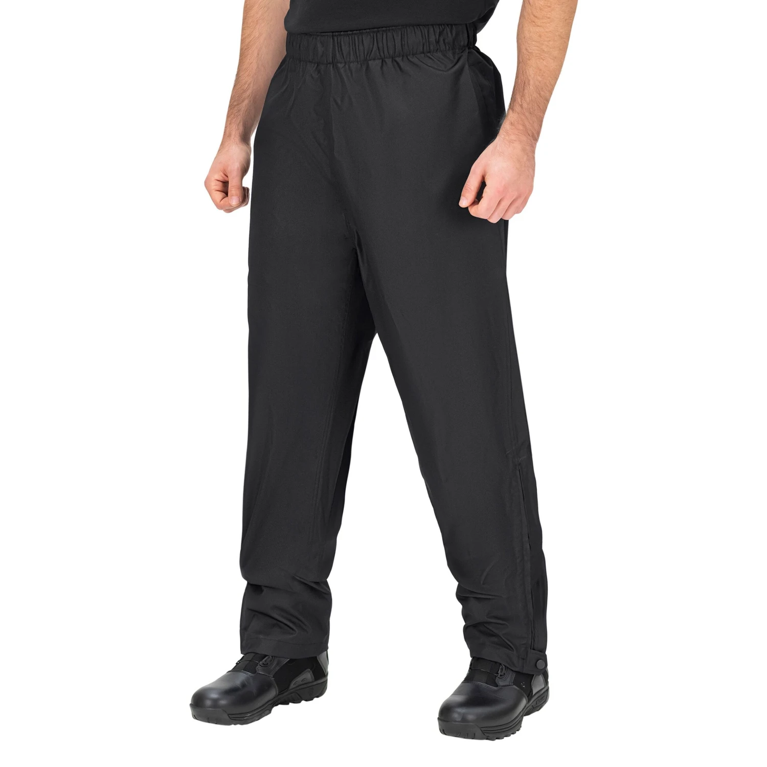 Our lightweight rain pants will keep you dry and comfortable. Available in black or in Hi-Vis version certified to ANSI 107: 2015 Type P Class E for daytime and nighttime visibility. Boot cut pattern and elasticized waistband for optimal appearance and fit. Side openings provide access to uniform pockets.
