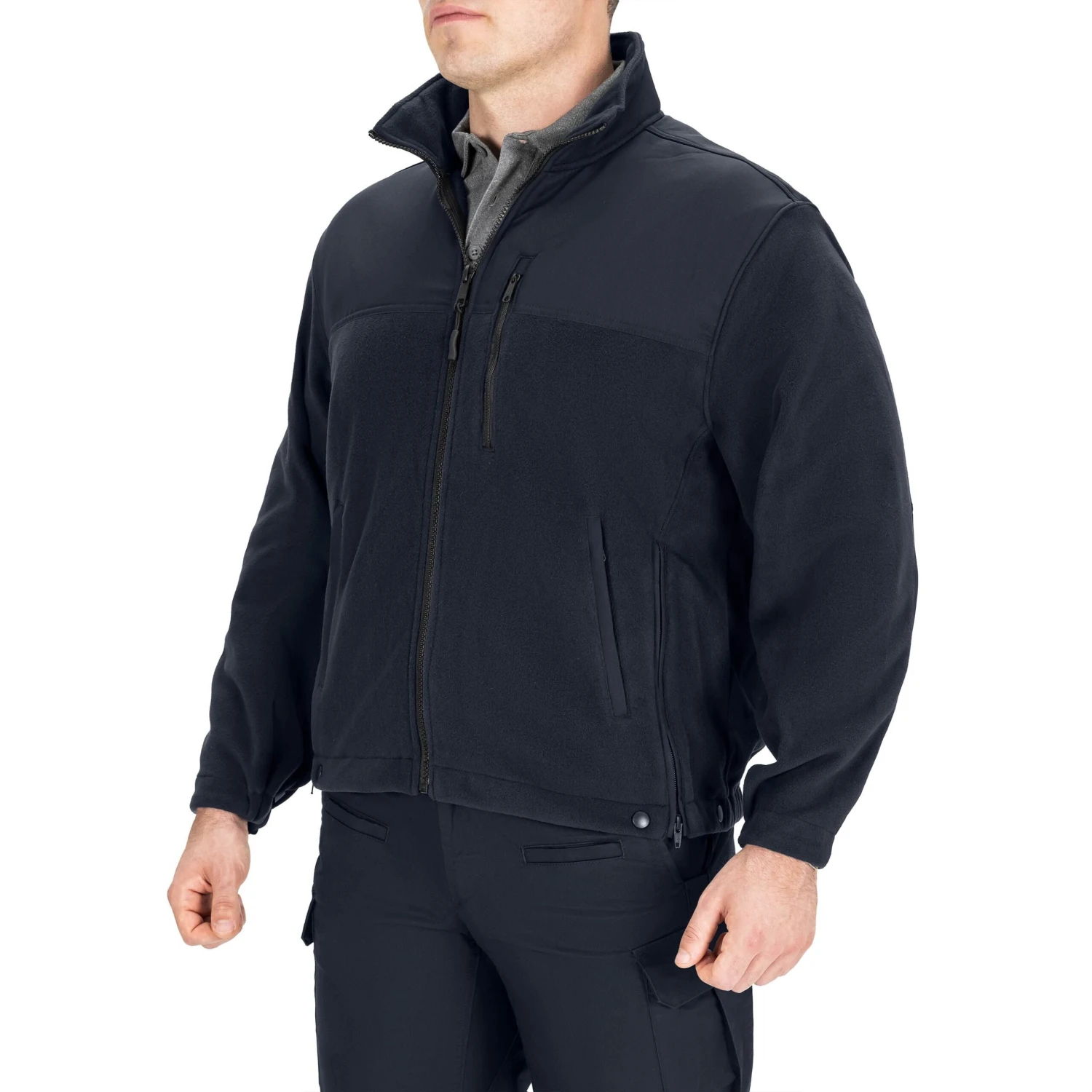 Soft and quiet micro-fleece face is wind resistant and warm, yet breathable enough to wear in the cruiser. Dobby reinforced front and back yokes for contemporary appearance and easy slide underneath outer shell layer. Full zipper front with inside fly for protection from the wind.