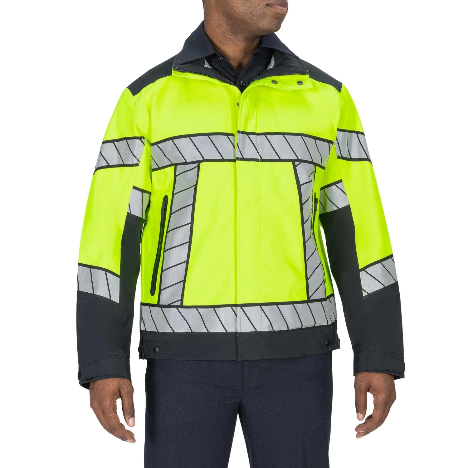 Meet the best in materials technology, brought to a super lightweight hi-vis hardshell duty jacket. Featuring a double fly storm front, waterproof zippered pockets and side openings for equipment access, and a Napoleon pocket under the storm flap, you’ll stay protected and visible. The proven, breathable protection of our B.DRY® membrane will keep you dry in all conditions. Add our optional hood by selecting your jacket size and then clicking the “Include a Hood” box which appears below the product sizes.